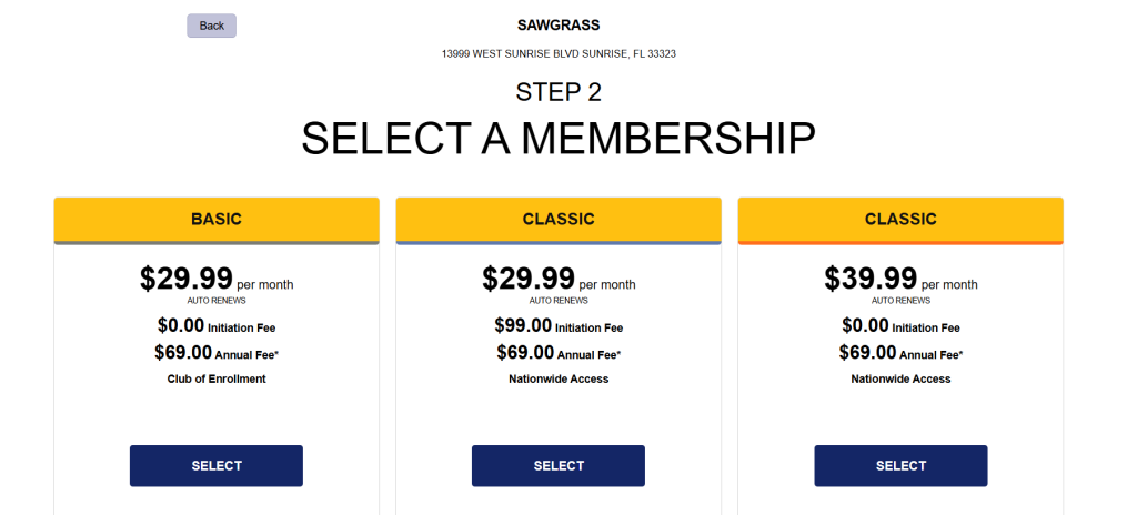 At specific locations like Sawgrass, the Premier Membership waives the initiation fee entirely and locks in at $44.99 monthly, granting entry to advanced classes and equipment.