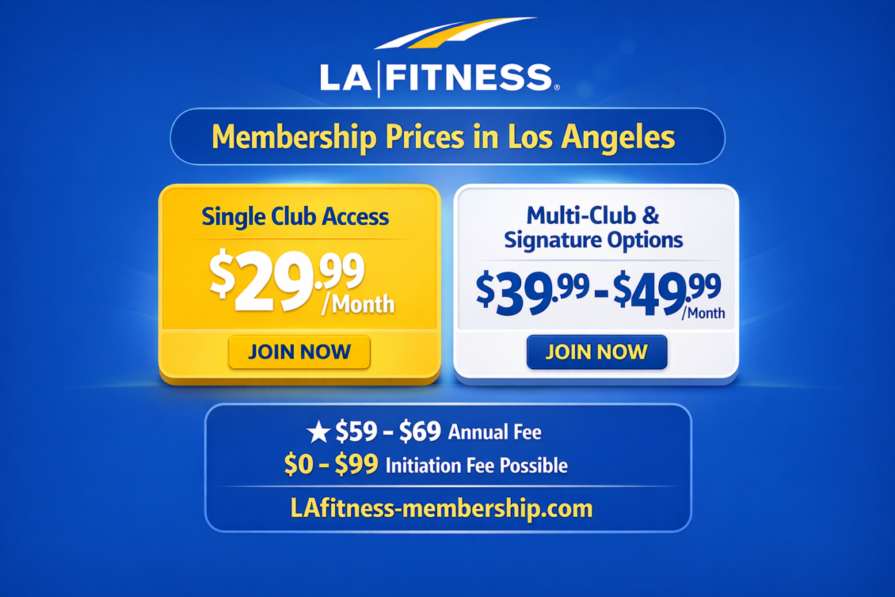 ★ LA Fitness membership prices in Los Angeles range from $29.99 monthly for single-club access to $39.99-$49.99 for multi-club or signature options.